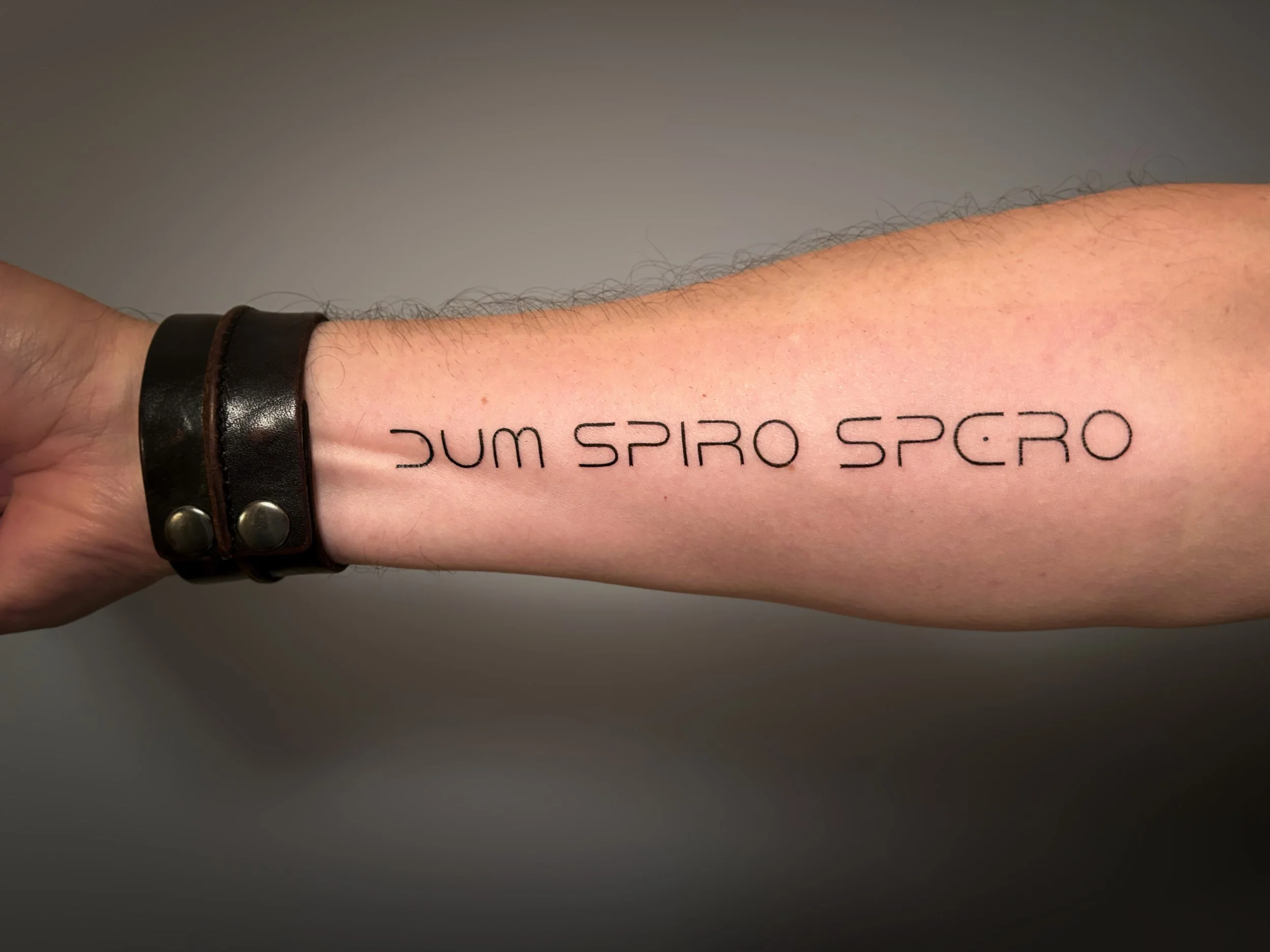 It’s a simple script, written in latin: Dum Spiro Spero - “While I breathe, I hope.”